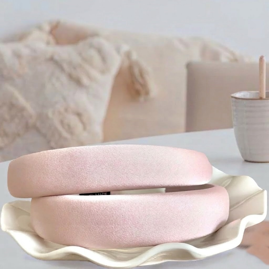 上質なサテン素材: 光沢が美しいサテン生地のヘッドバンドと、ローズゴールドのポーチ(15×24cm)の華やかなセットです。